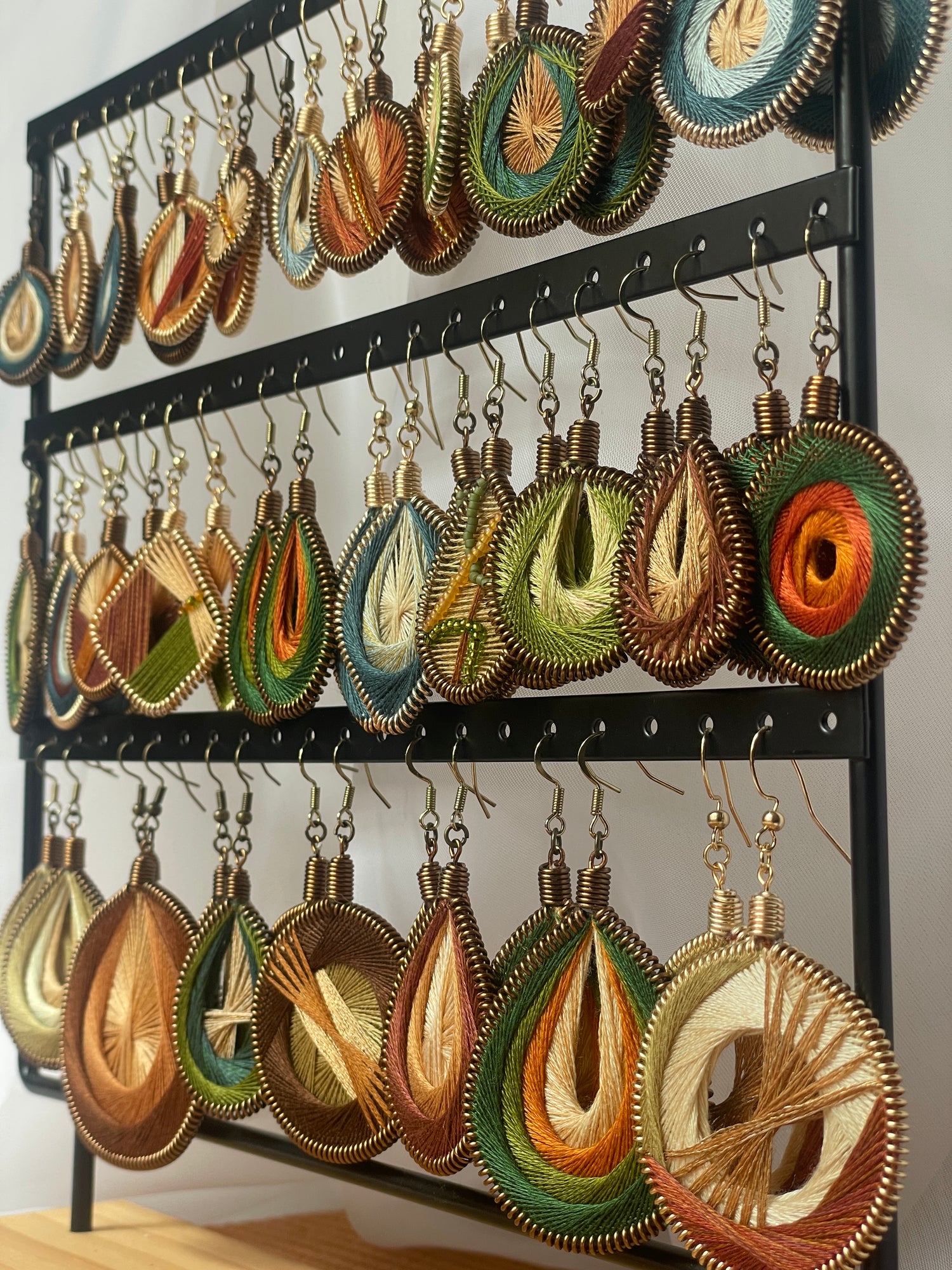 A limited collection of Thread Earrings with a unique color theme and varying designs.